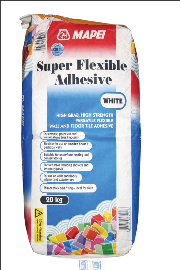 Cement - based tile adhesive that is suitable for interior and exterior wall and floor areas. Suitable for gypsum plaster and plasterboards, cement-based and other proprietary tile backer boards, Adhesive bed depth up to 15mm. Long pot life - up to 8 hours use after mixing. Up to 60 minutes tile adjustment time